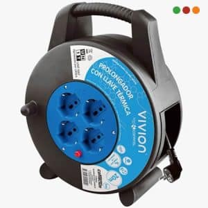 Electricidad | Alargue Carretel 30 mts / 4 x Tomas / Llave / Ficha Schuko Vivion