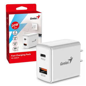 Cargador Genius PD-20AC 20W blanco USB-C y USB-A.