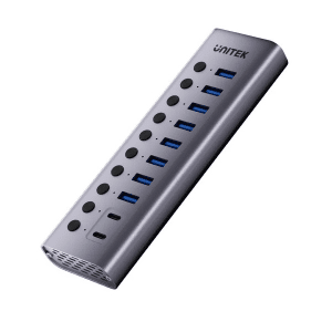 HUB USB-C Unitek 10 en 1 con interruptor 8 USB-A + 2 USB-C