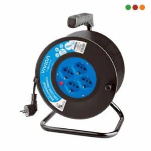 Electricidad | Alargue Carretel 30 mts / 4 x Tomas / Llave / Ficha Schuko Vivion