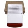 Diseño MCU, multifunción, SPL de 118db, 4 LEDs (parpadeo standby), protección metálica, gabinete plástico contra insectos, advertencia de corte de línea, lleva batería de 12V 1.3A recargable (NO INCLUIDA).