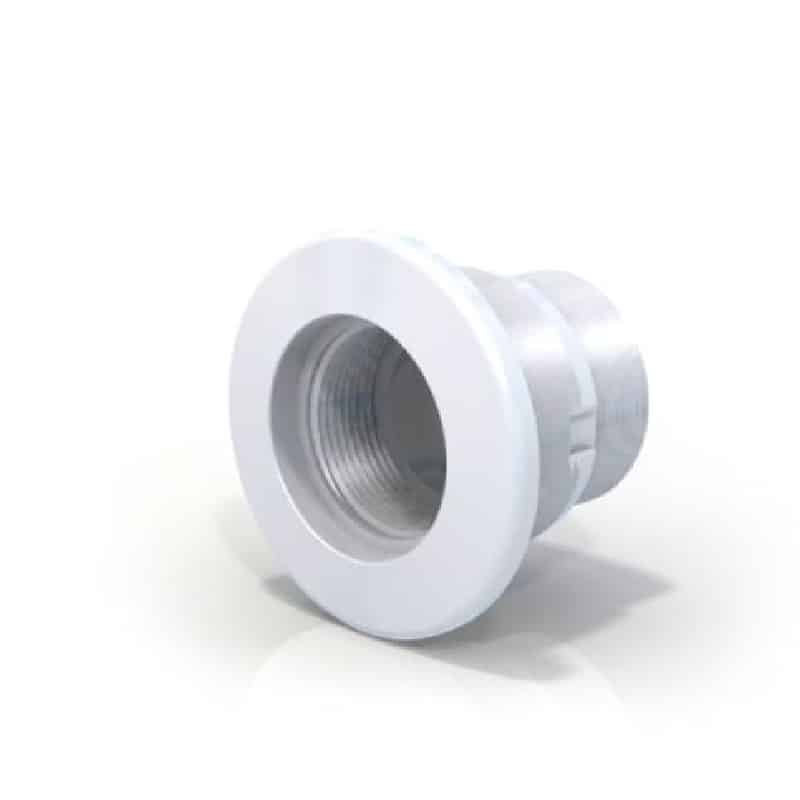 Boquilla de aspiración para hormigón (143905): para piscinas de hormigón, con aro desmontable blanco, y cuerpo de Ø 50mm para pegar. Se trata de un dispositivos de aspiración que se instala por debajo del nivel de agua de la piscina y se utilizan para conectar la manguera del limpiafondo, que permita aspirar toda la superficie del fondo de la piscina.