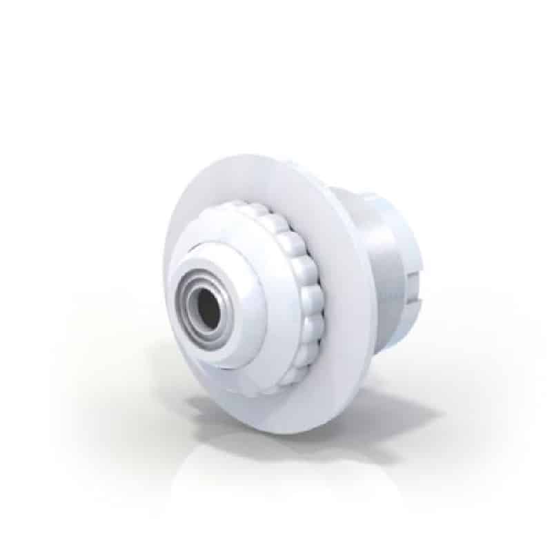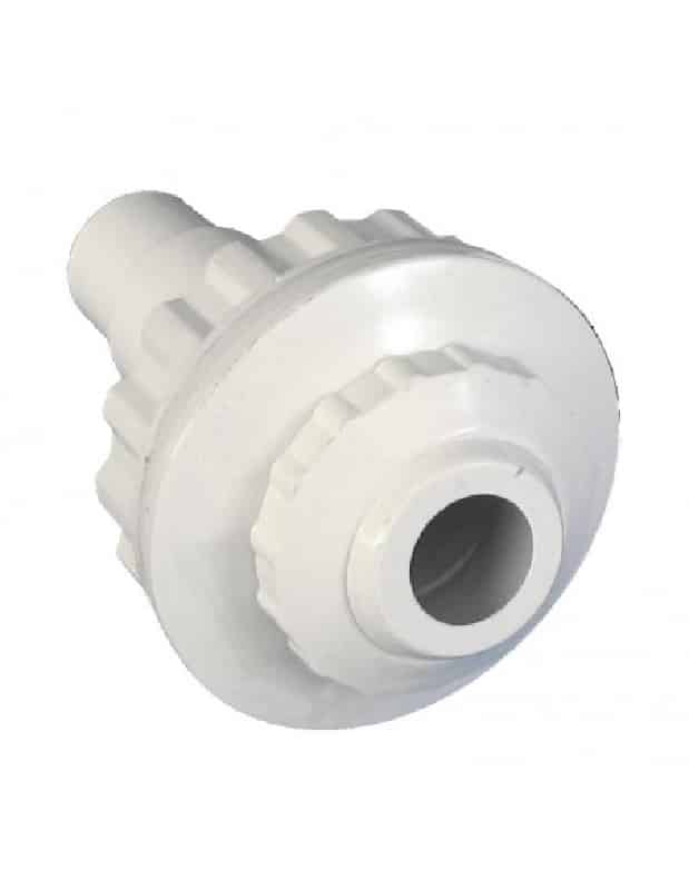 Boquilla de impulsión fibra (117007): Retorno orientable para piscinas de fibra de vidrio, con aro fijo cromado, cuerpo de Ø 50mm para pegar y boquilla multiflujo, la cual consiste en un pico de Ø 14mm que puede cortarse fácilmente para llegar a Ø 20mm o a Ø 25,4mm. Instalados por debajo del nivel de agua, han sido diseñados para producir flujo en dirección al skimmer o toma de fondo, y así favorecer al filtrado y limpieza de la pileta.