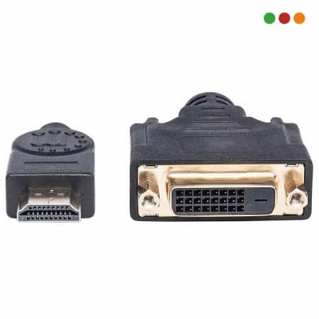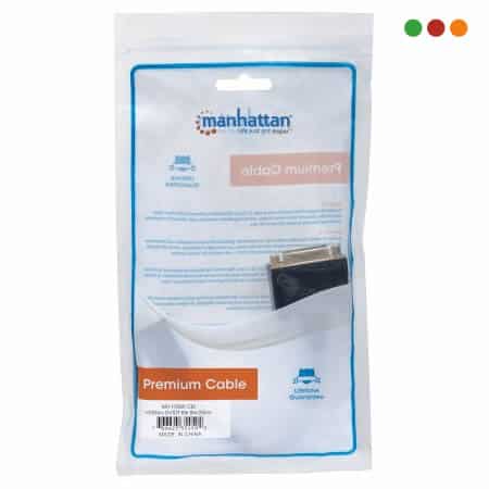 Los cables HDMI a DVI de Manhattan brindan los colores más brillantes y acertados y el detalle más fino cuando se conecta a televisores de alta definición, pantallas LCD y plasma, receptores digitales de satélite, reproductores DVD, proyectores digitales y otros dispositivos de pantalla equipados con DVI- o HDMI-. Los cables HDMI a DVI de Manhattan están diseñados y construidos con materiales de calidad para entregar transmisiones dependientes en aplicaciones de video digital. Cubierto completamente y blindado trenzado, botas moldeadas con alivio de tensión, conexiones chapadas en oro con cubiertas protectoras de PVC que proveen una máxima conductividad y transmisiones de señal claras y nítidas con interferencia EMI y distorsión reducidas.