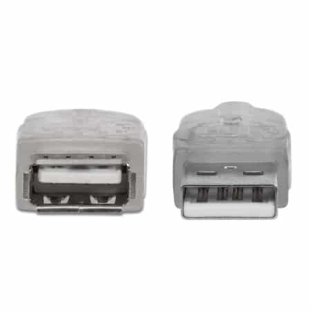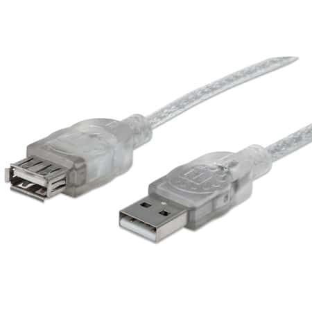 Quality connections for superior performance MANHATTAN Hi-Speed USB 2.0 Extension Cables easily lengthen connections between computers and USB-powered peripherals. Ideal for use with printers, keyboards, external enclosures and an expanding assortment of digital devices, MANHATTAN Hi-Speed USB 2.0 Extension Cables are engineered and constructed of quality materials that support data transfer rates up to 480 Mbps to deliver dependable, error-free transmissions over longer distances. Full foil and braided shielding, gold-plated contacts and molded boots with strain relief help assure maximum conductivity for the fast connection of USB-enabled devices with reduced EMI interference and minimal data degradation.USB Standard-A male to USB Standard-A female