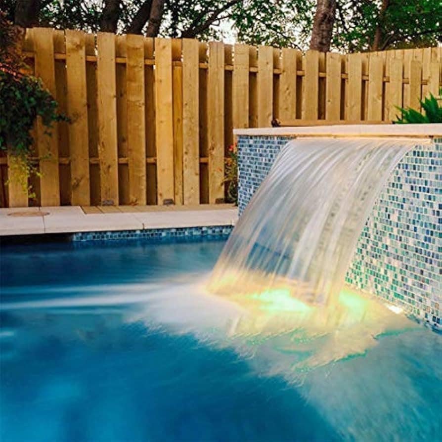 Cascada laminar Vulcano de 120 cm ideal para darle un toque moderno y elegante a tu piscina. Genera una caída de agua uniforme tipo cortina que mejora la estética y aporta un efecto relajante.