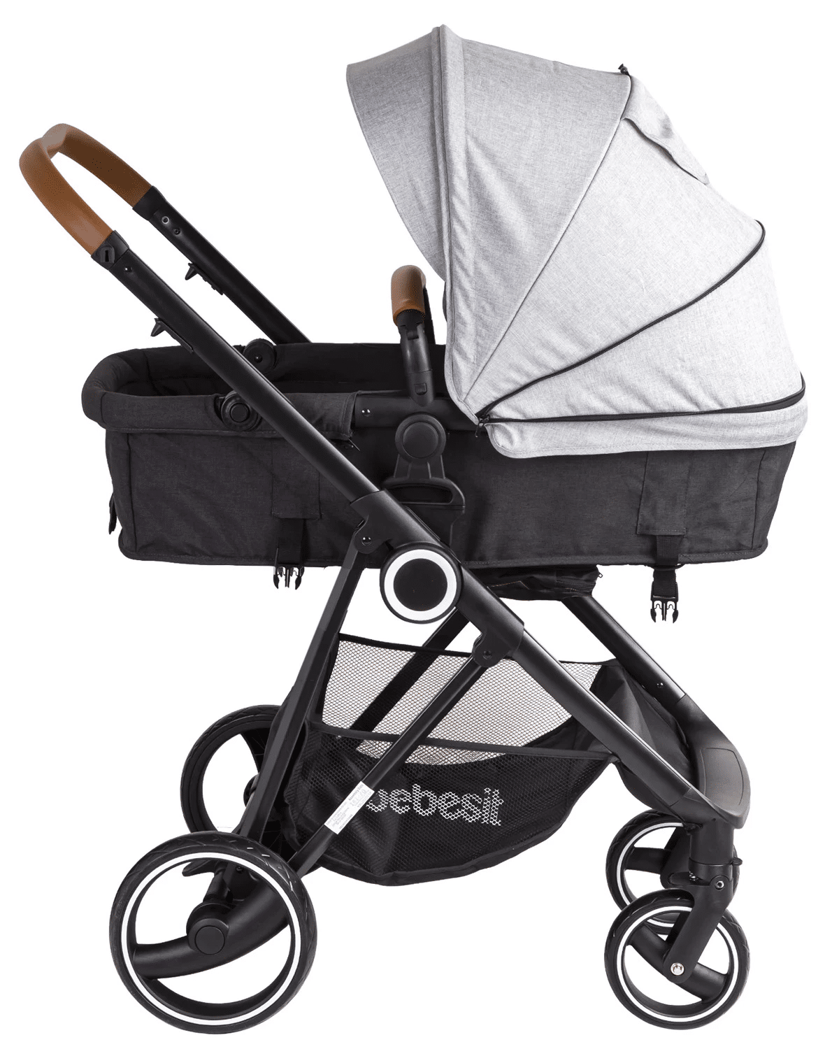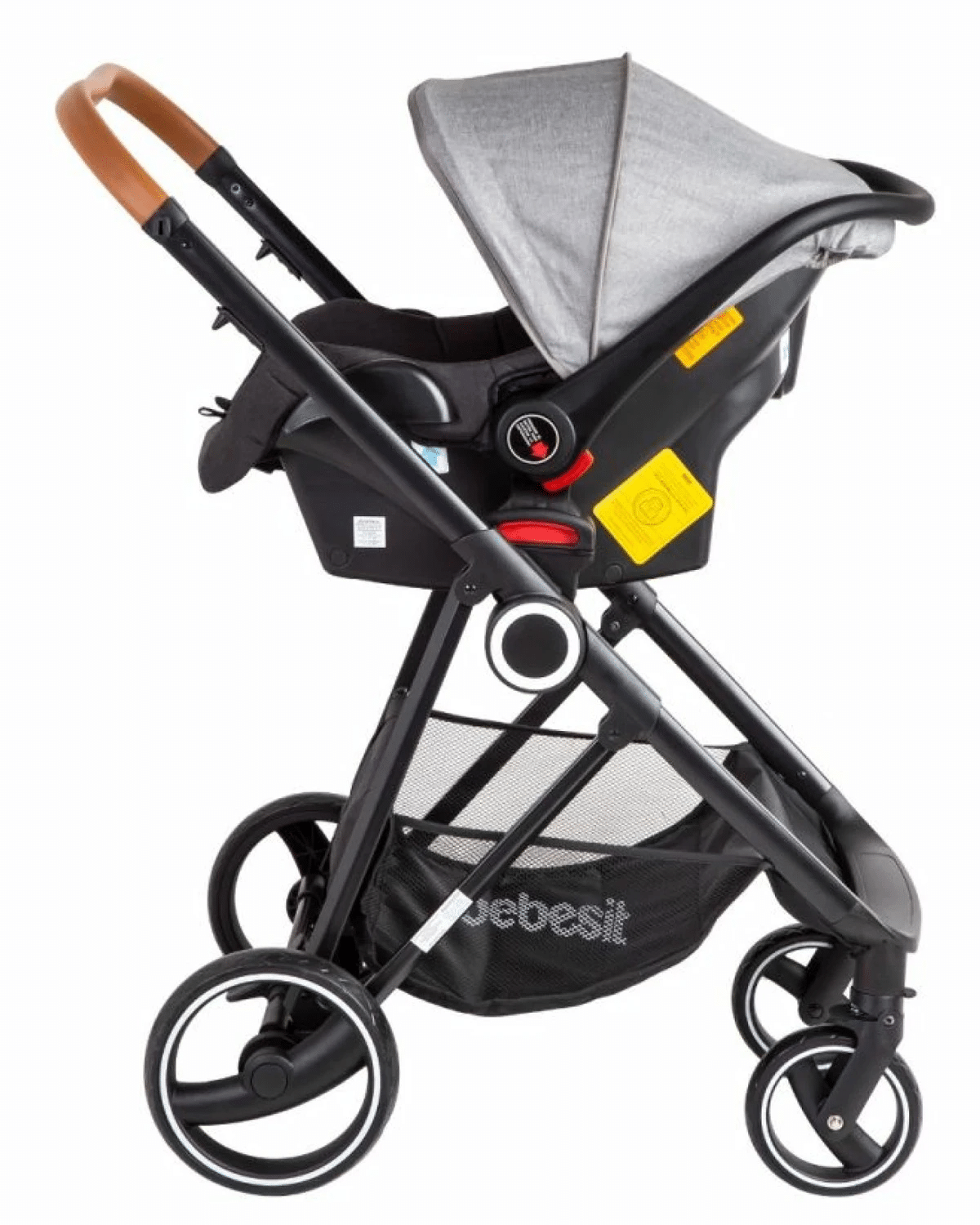 Coche de bebé + silla para auto Bebesit Travel System Cosmos Deluxe – Gris. Este sistema de viaje de alta calidad ofrece seguridad y confort desde el nacimiento hasta los 3 años. Con diseño elegante y funcional, es fácil de manejar y transportar. ¡Adquiere el tuyo y garantiza paseos seguros y cómodos para tu bebé!
