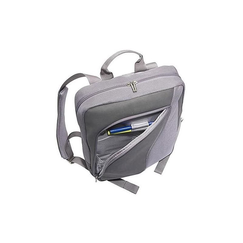 - Para Notebooks 15.4'. Mochila de carga superior. Confeccionado en microfibra textura de gamuza y malla de nylon. Compartimento frontal con organizador y llavero para accesorios y documentos. Bolsillo interior para folios. Strap ajustable al hombro. Asa para facilitar su transporte. Forro interior color plata para facilitar la visibilidad del contenido. Capacidad extendida 33º. Cierres metálicos.