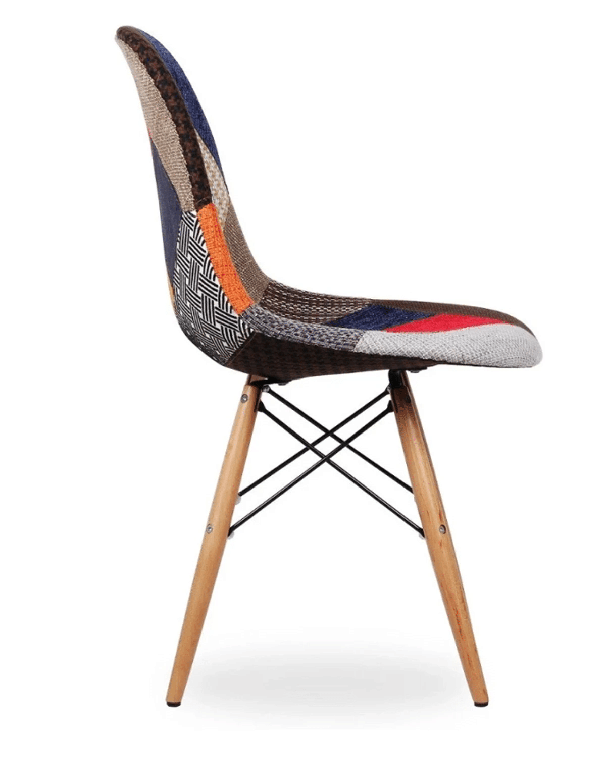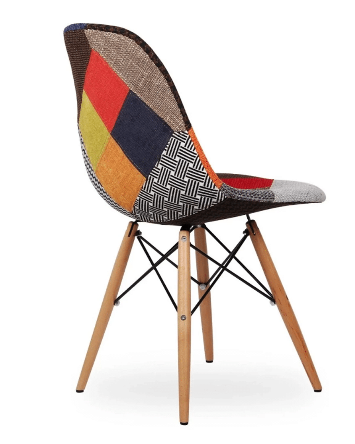 La silla Eames Patchwork en el tono "Cálida" es una pieza de diseño única y acogedora que añade un toque de estilo y confort a cualquier espacio. Con su diseño moderno y su tapizado en una mezcla de tonos cálidos, esta silla combina funcionalidad y estética. Fabricada con materiales de alta calidad y un acabado meticuloso, garantiza durabilidad y resistencia. Perfecta para salas de estar, comedores o espacios de trabajo, la silla Eames Patchwork en "Cálida" es una opción versátil y elegante para cualquier ambiente.