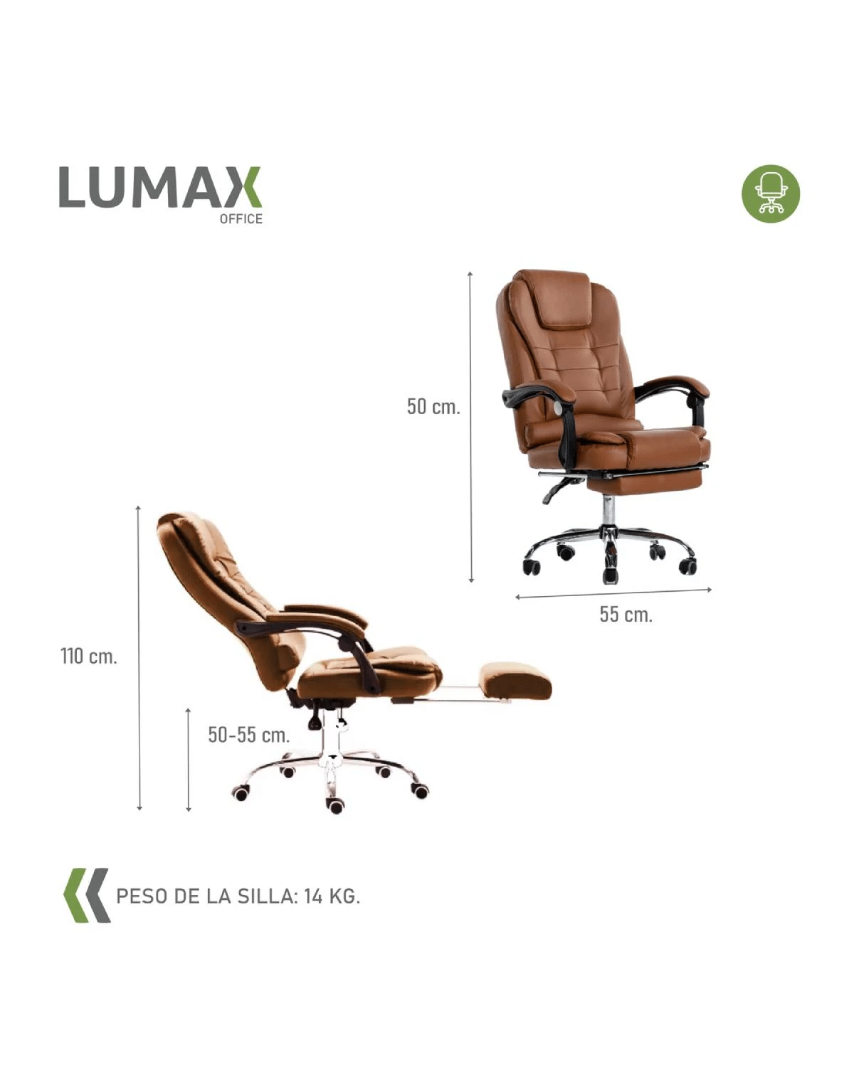 Experimenta el lujo y la comodidad con la silla ejecutiva Lumax Modelo Miles en cuero marrón. Equipada con apoyapiés integrado y 7 puntos de masaje, esta silla ofrece una experiencia de trabajo excepcionalmente relajante. Su diseño elegante en cuero genuino agrega un toque de sofisticación a cualquier entorno de oficina. Además, cuenta con características ergonómicas para brindar un soporte óptimo durante largas horas de trabajo. Descubre el equilibrio perfecto entre estilo y funcionalidad con la silla ejecutiva Lumax Modelo Miles.