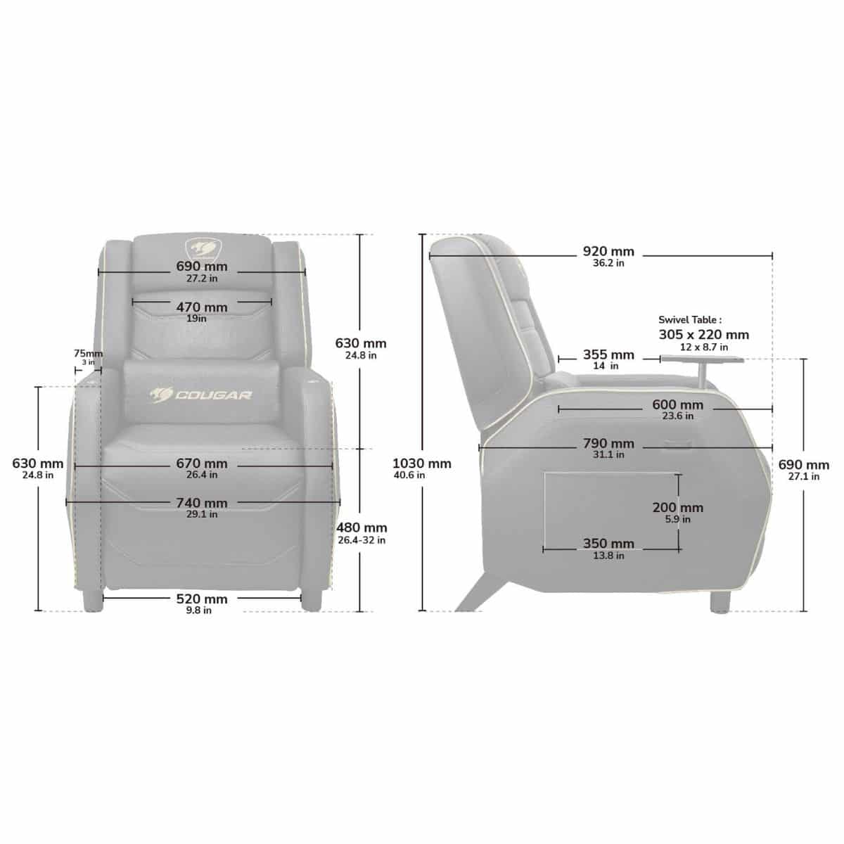 Silla Gamer Sofá Cougar Ranger S Black Gaming