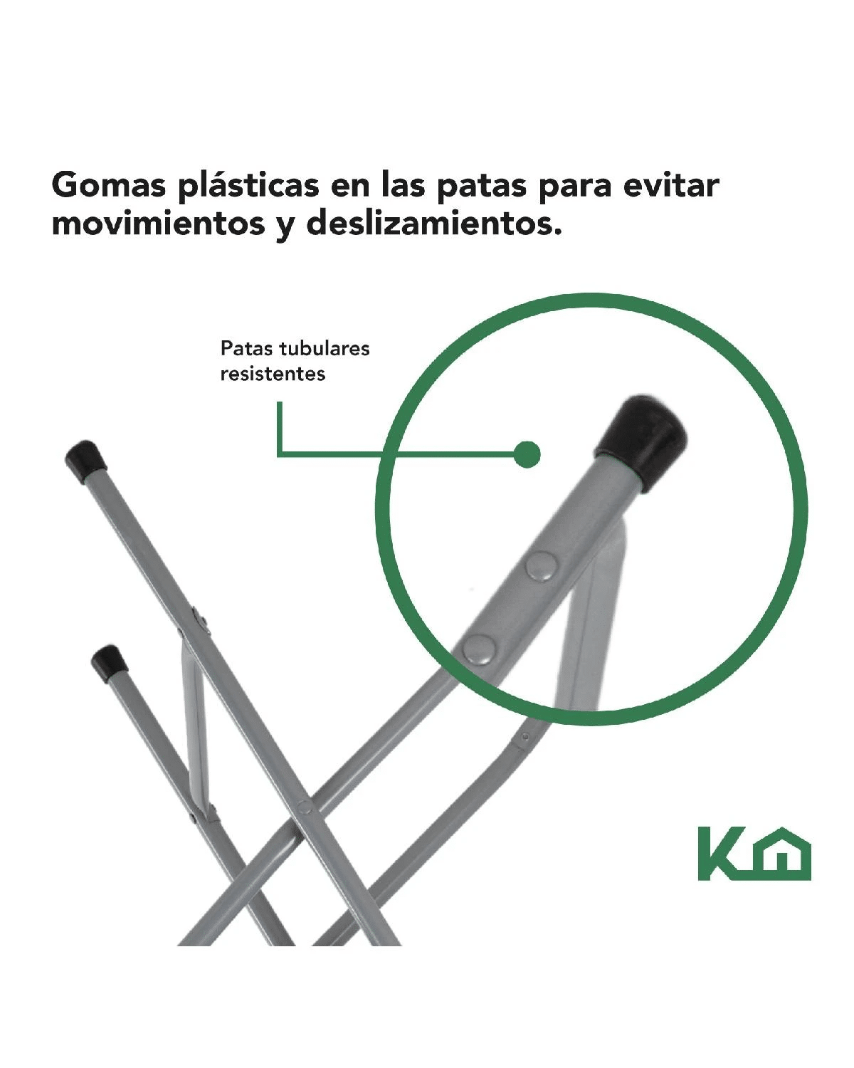 Patas tubulares con gomas antiderrapantes de plástico para evitar movimientos y deslizamientos.