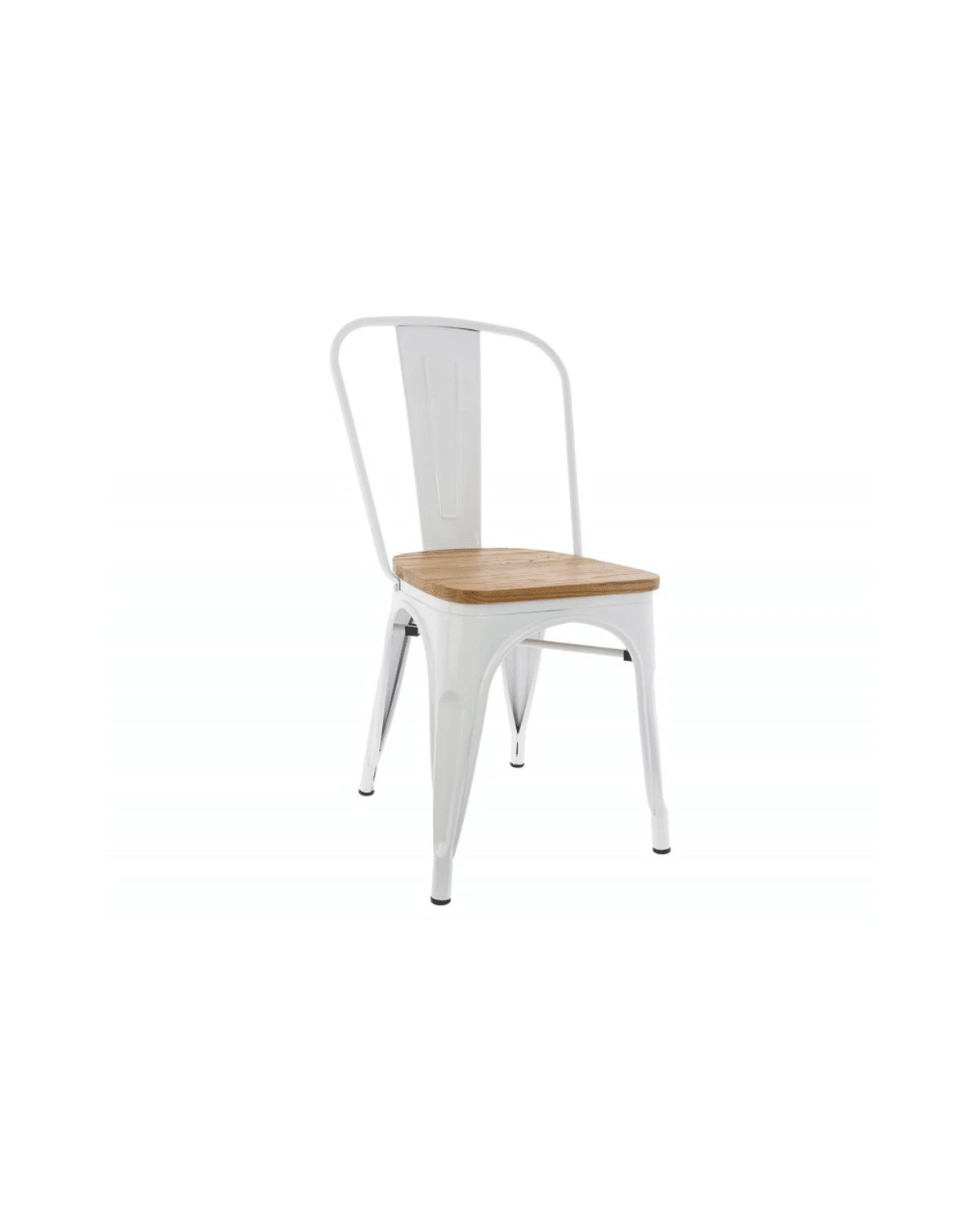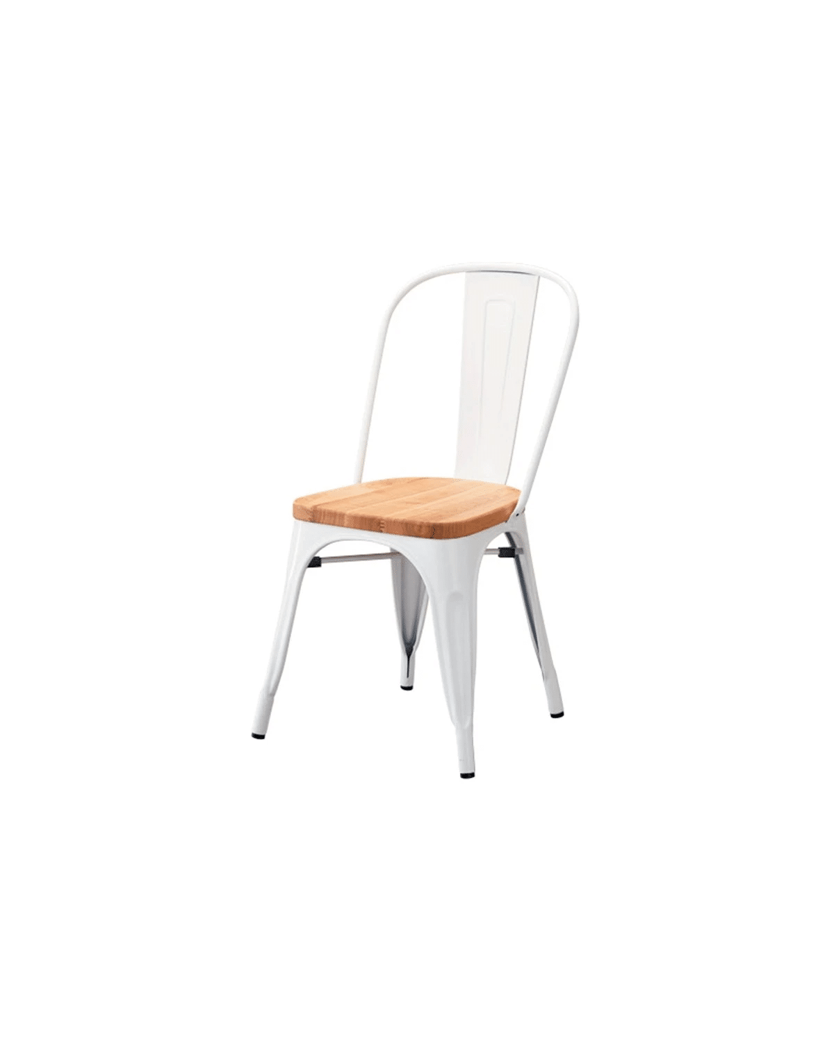 La silla Tolix metálica vintage con asiento de madera en color blanco combina estilo industrial y elegancia. Fabricada con materiales de alta calidad, esta silla ofrece durabilidad y resistencia. Su diseño icónico y su asiento de madera añaden un toque de calidez a cualquier espacio. Perfecta para uso en interiores y exteriores, esta silla es ideal para agregar un toque de estilo vintage a tu hogar, restaurante o cafetería.
