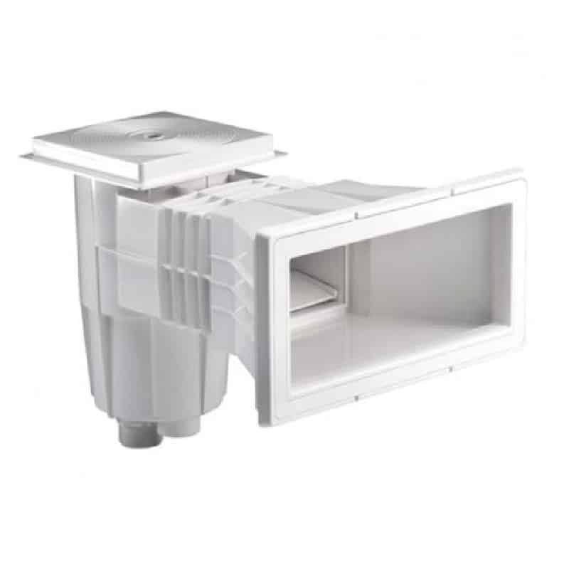 Skimmers, se “beben” el agua de la piscina. Su función es aspirar la lámina superficial del agua para su filtración y tratamiento. Su cesto interior actua de colador, recogiendo la suciedad de mayor tamaño.