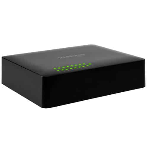 Su puerto LAN 1 posee soporte a PoE pasivo, permitiendo que el switch sea alimentado por el cable de red, lo que elimina la necesidad de una toma próxima al aparato. (No inlcuido)