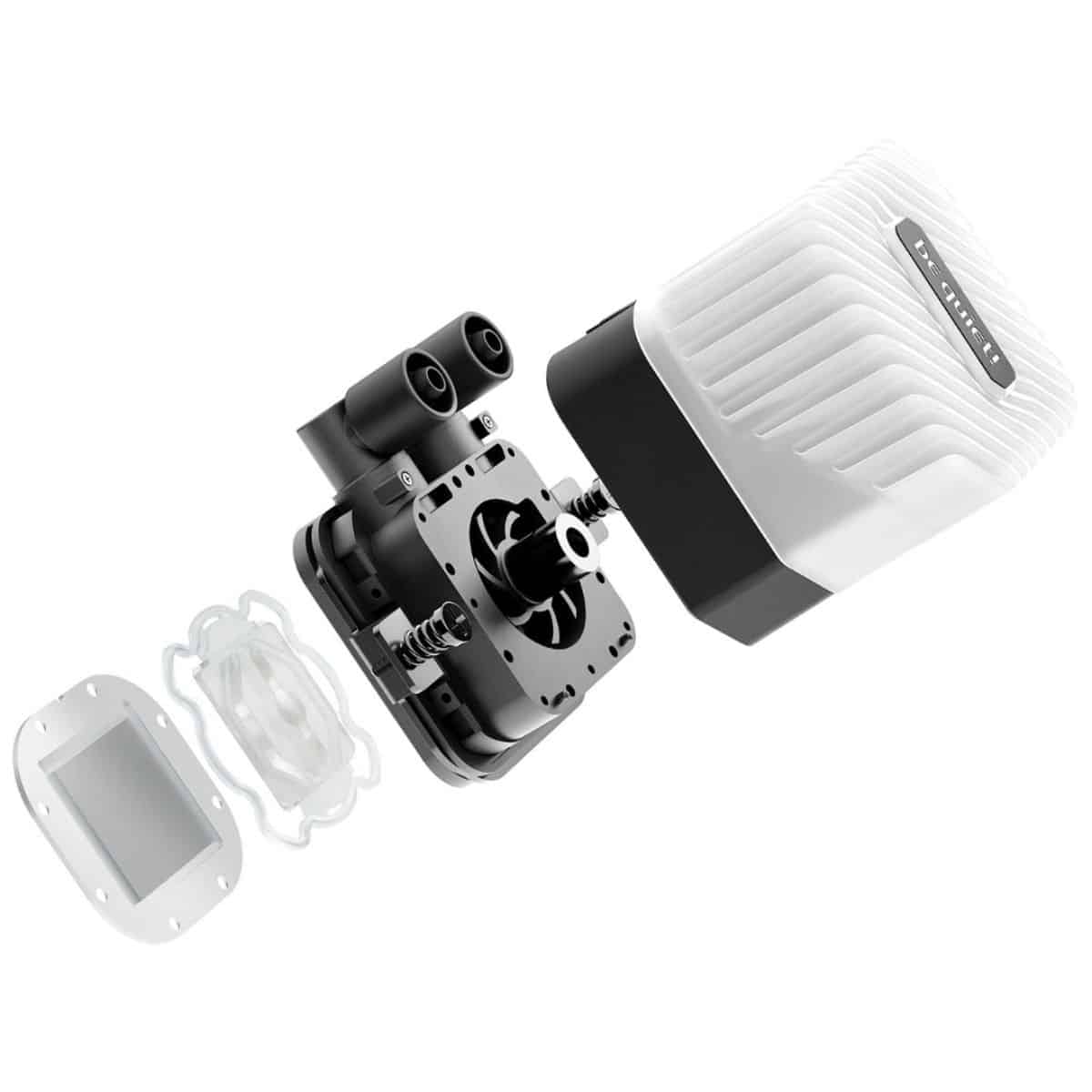 Puerto de recarga de fácil acceso y botella de refrigerante incluida para una larga vida útil.